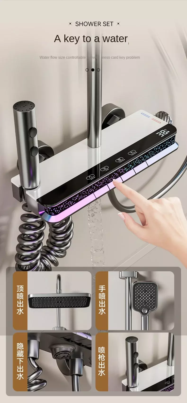 📊 Digital Temperature Display – The intelligent digital display shows the water temperature in real time, allowing users to control the shower temperature at any time, enhancing safety and comfort.