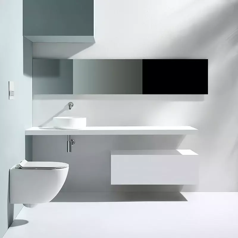 Modern Wall-Hung Design — Wall-hung installation creates a minimalist bathroom look and frees up floor space for easy maintenance.