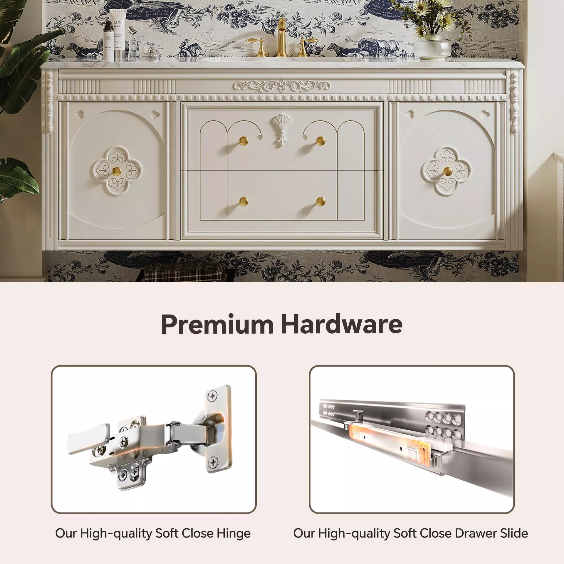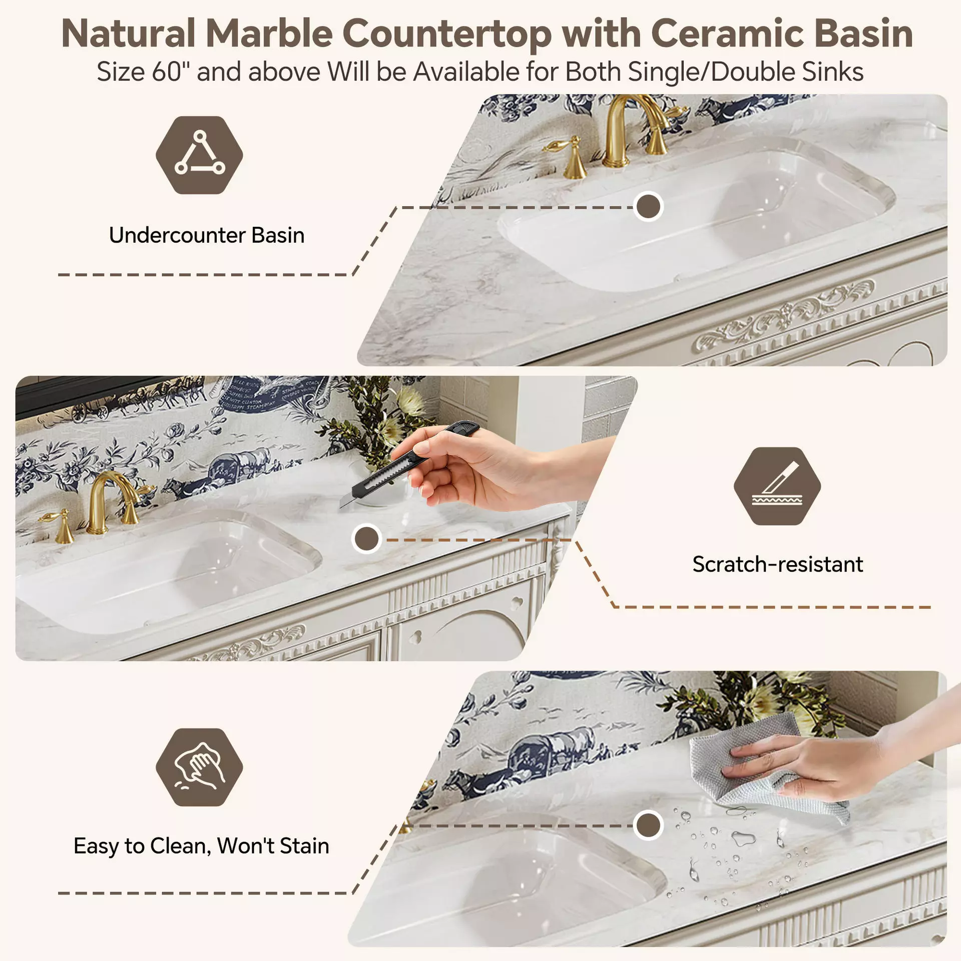 | Material | Solid Wood Cabinet + Marble Top |