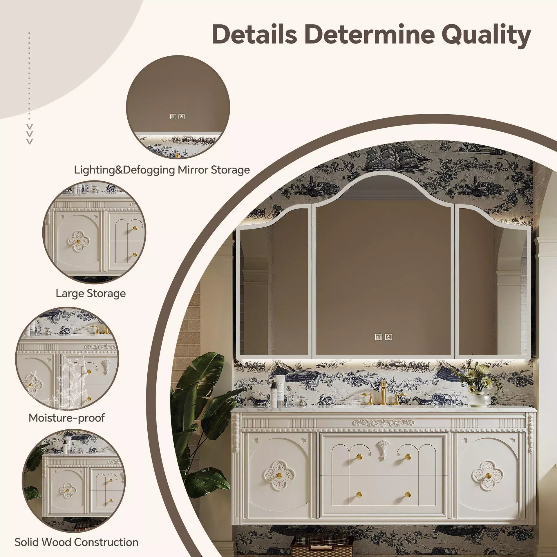 | Color | White / Cream / Antique Wood / Custom |