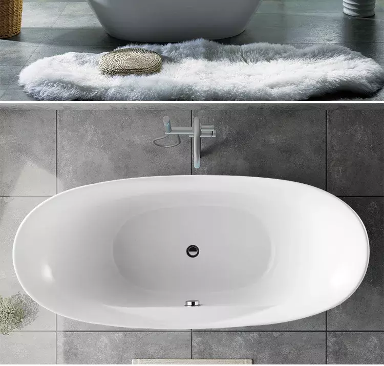 The bathtub is manufactured from high-quality acrylic reinforced with fiberglass, providing excellent durability, smooth surface finishing and strong heat retention. Acrylic bathtubs are widely used in modern bathrooms because they are lightweight, corrosion resistant and easy to maintain.