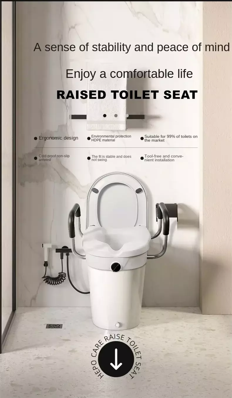 Raised toilets are suitable for elderly people, pregnant women, disabled individuals and patients recovering from surgery.