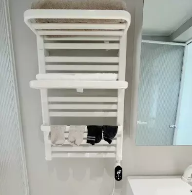 Electric towel warmers like this model heat the rack bars quickly and distribute heat evenly across towels draped over them. This helps reduce dampness, mildew and unpleasant odours, while delivering a cozy, premium feel to towels after each use. Modern versions often include thermostatic control, timers and safety features to maintain consistent temperature and prevent overheating.