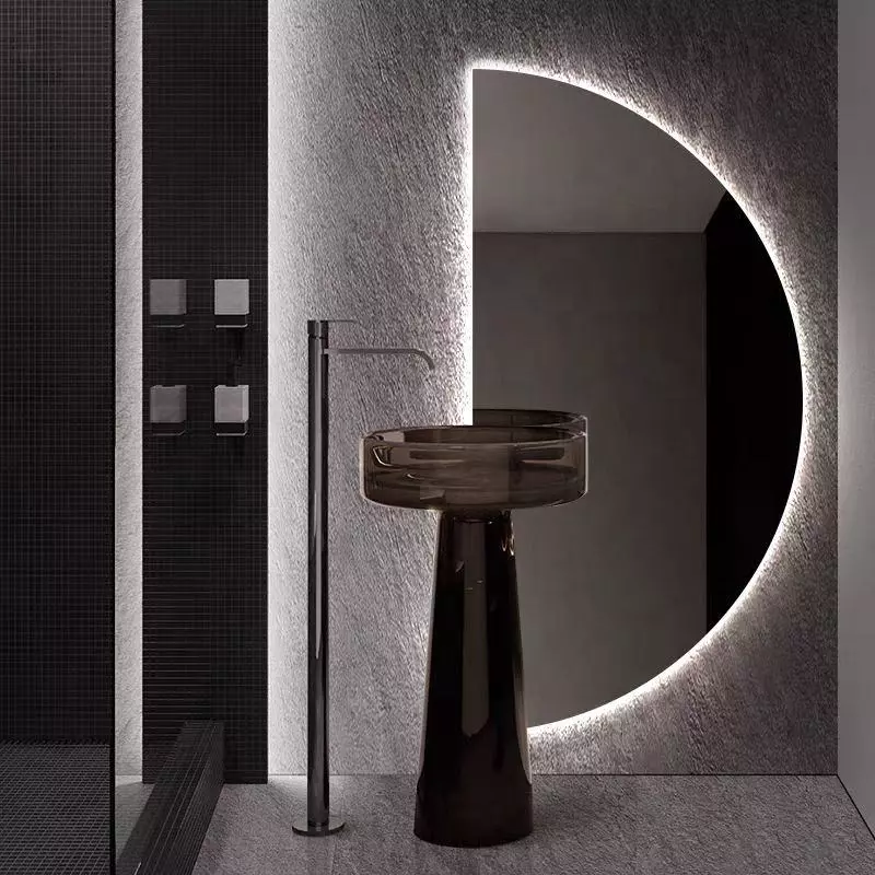 This half moon bathroom mirror features a semi-circular design that adds a soft, artistic touch to modern interiors.