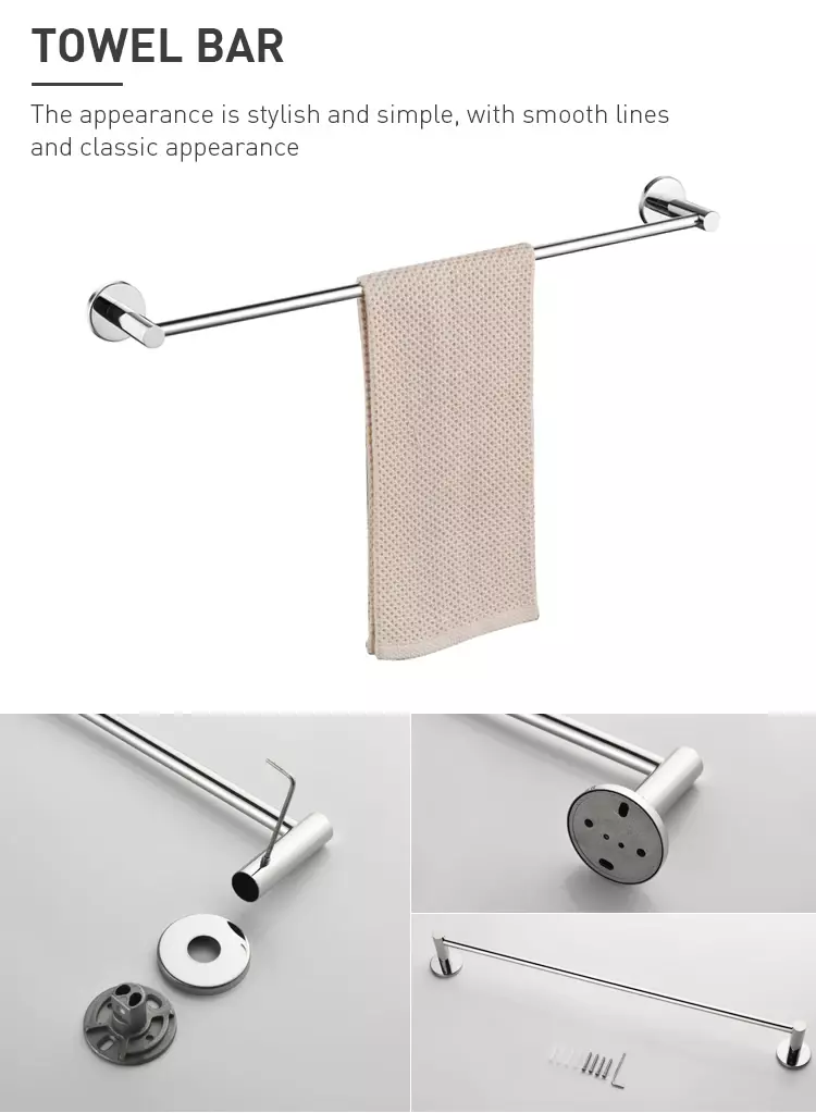 Specification Details Product Name Modern Nordic Luxury Decor 4-Piece Bathroom Accessories Set Main Material SUS304 stainless steel (corrosion-resistant) Finishes Available Chrome, matte black, brushed gold, mirror polish Design Style Modern Nordic / Contemporary Included Pieces 4 assorted shower & toilet accessories (depending on SKU) Installation Type Wall mounted (screw or adhesive) Corrosion Resistance High (SUS304) Application Home bathrooms, hotel washrooms, apartments, commercial restrooms Warranty Typically 3 years (varies by supplier) OEM / ODM Acceptable (depends on supplier) Packaging Size ~80 × 80 × 40 cm (single set) Gross Weight ~1.0 kg per set Customization Logo, finish, packaging options (supplier dependent)