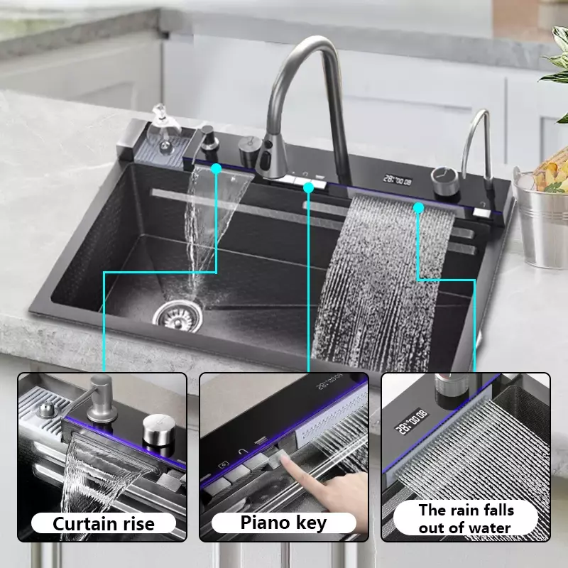 Modern Nano Black Surface — The nano black brushed finish brings premium aesthetics and resists fingerprints, stains, and scratches for long-term beauty.