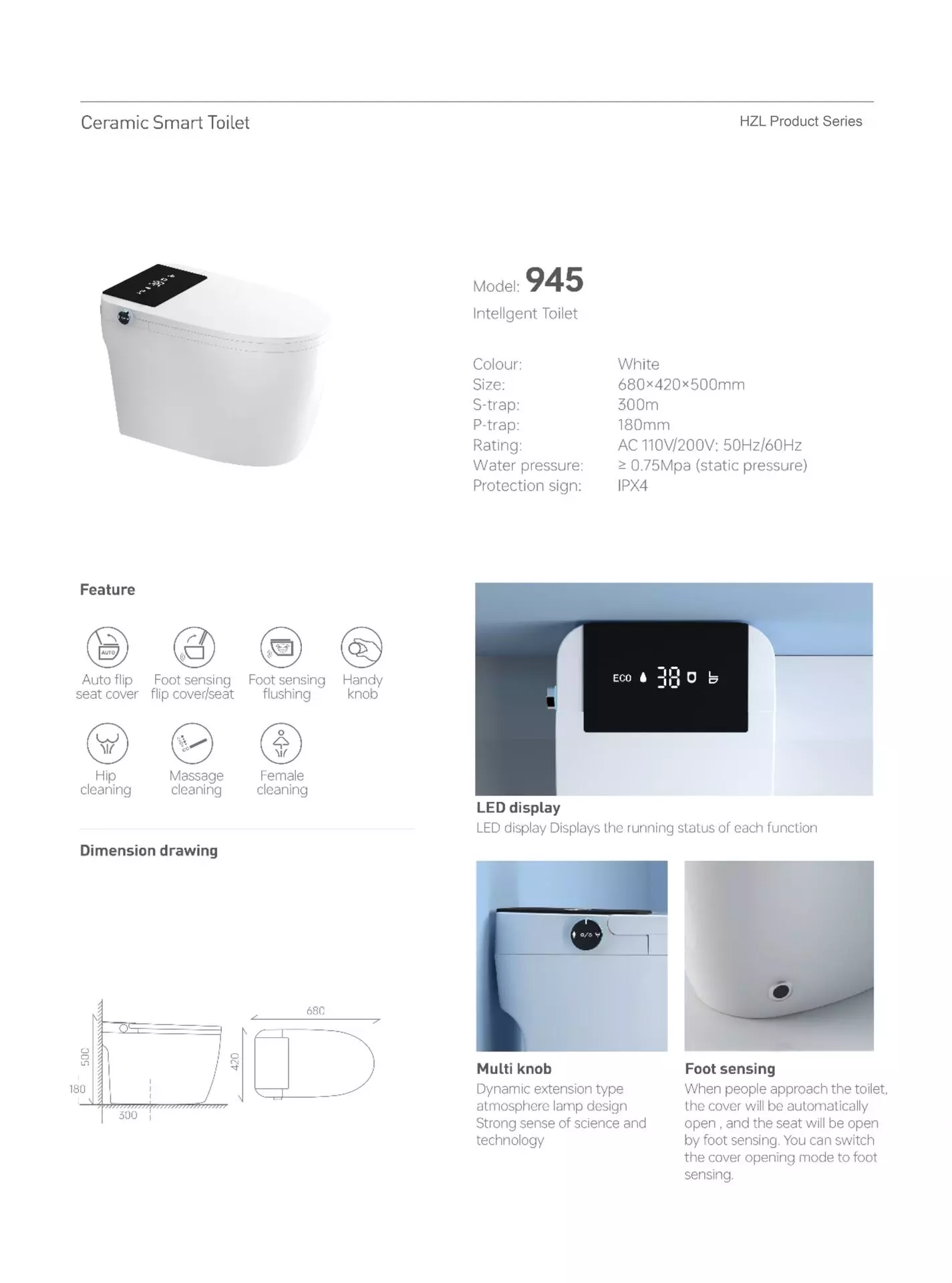 Product Name | Smart Toilet H945E
