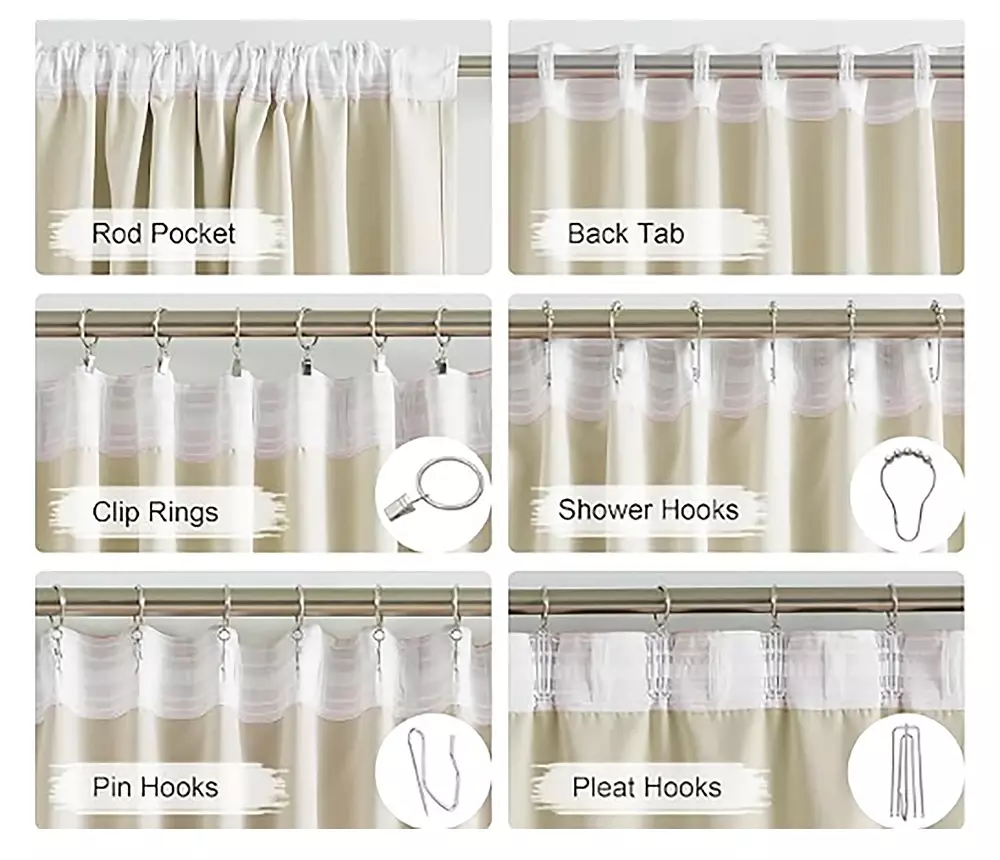| Installation | Rod or track mounting (hooks/rings sold separately) |