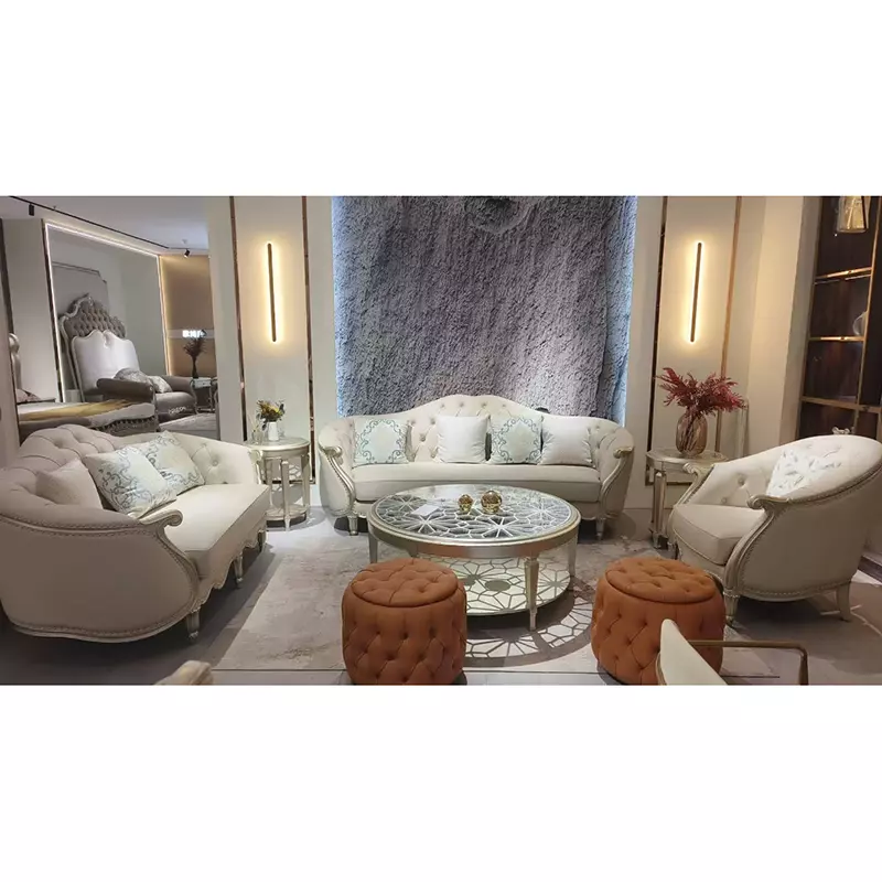This European luxury sectional sofa set combines classic French elegance with modern functionality. Designed with graceful curves, detailed carvings, and a spacious layout, it enhances both aesthetics and practicality in large living spaces.