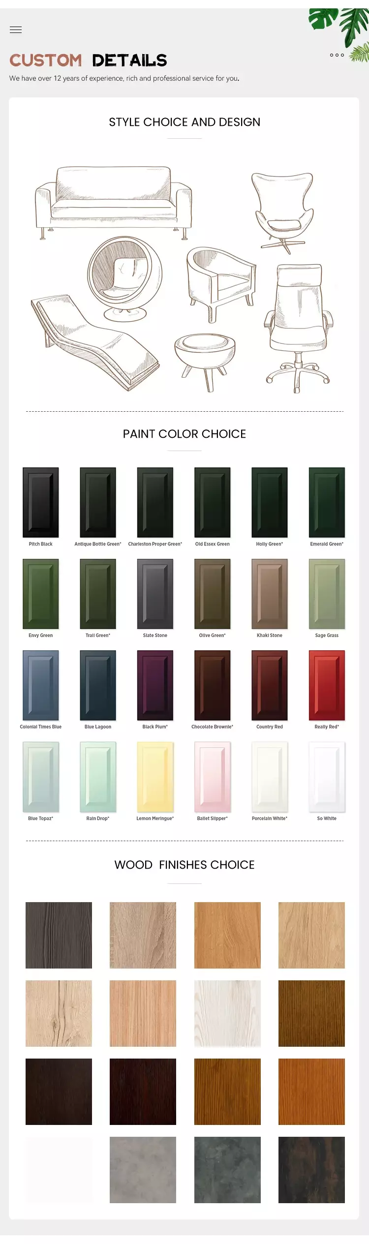 - Fabric & color selection