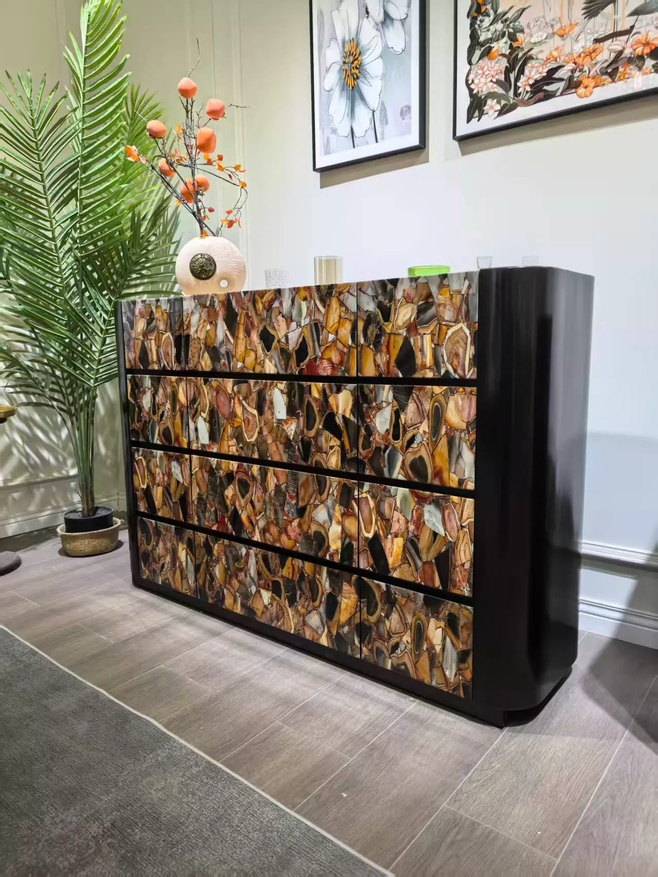 This solid wood chest of drawers combines modern aesthetics with practical storage functionality. Featuring clean lines and natural wood grain, it enhances interior spaces with warmth and elegance.