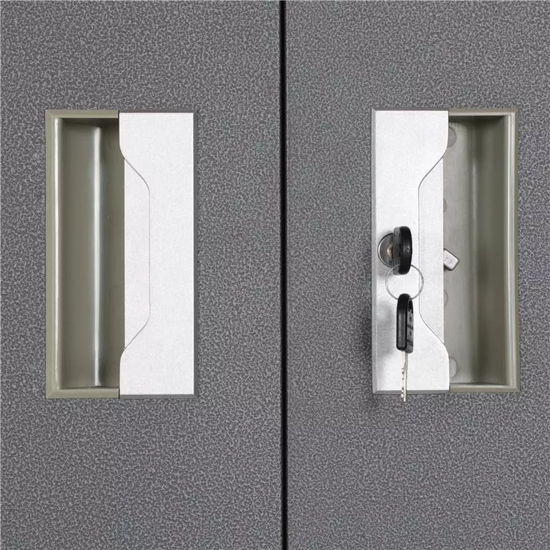 Featuring two lockable doors, this storage cabinet ensures safe containment of tools, supplies, documents and personal items. The spacious interior includes adjustable shelves that allow flexible arrangement of stored goods — whether storing office files, household essentials, cleaning supplies, tools or equipment.
