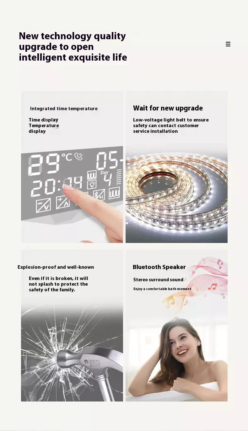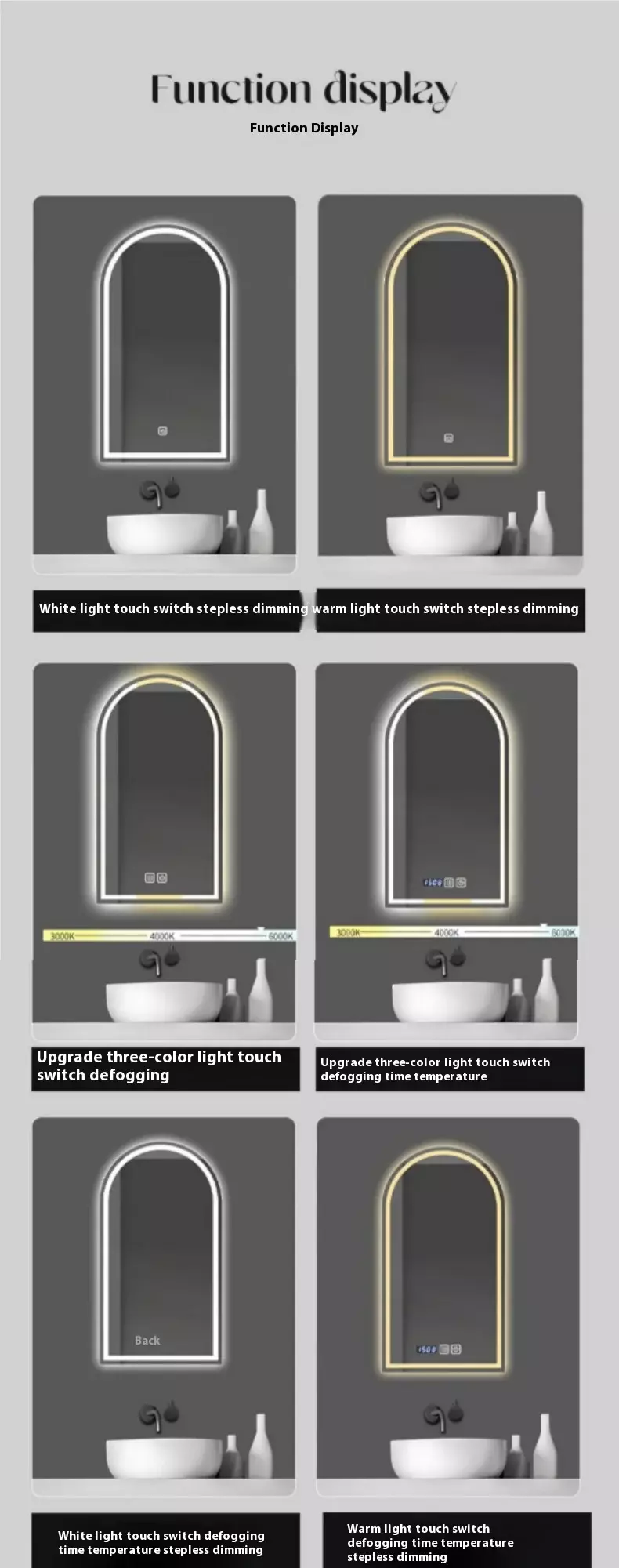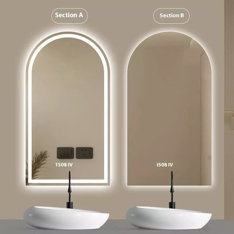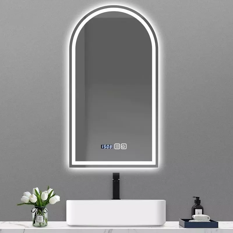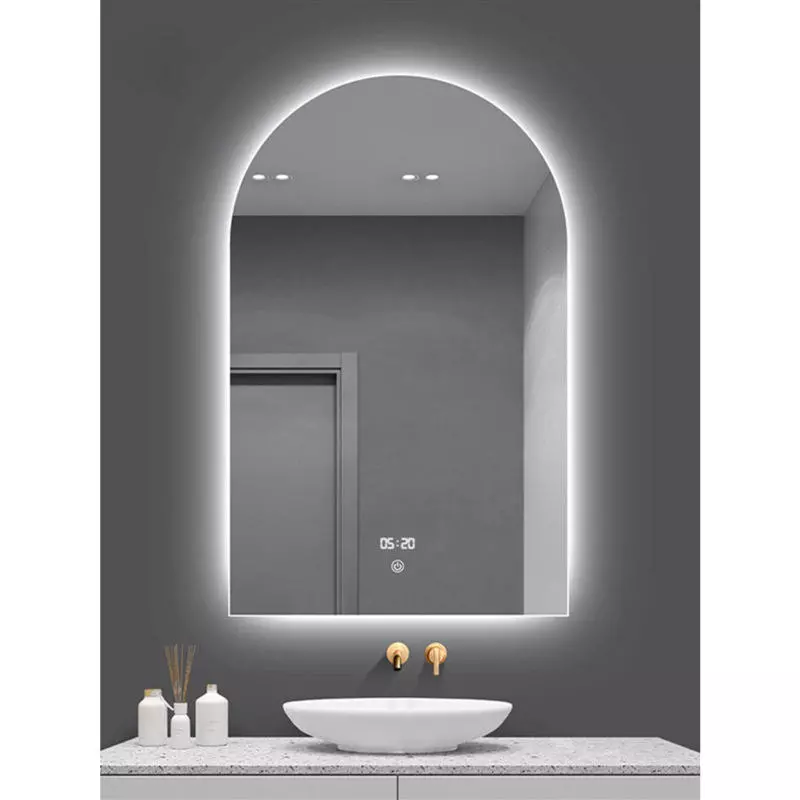 Dette luksuriøse smarte LED badeværelsesspejl kombinerer moderne æstetik med intelligent teknologi, hvilket skaber en høj-slutbadeværelsesløsning.