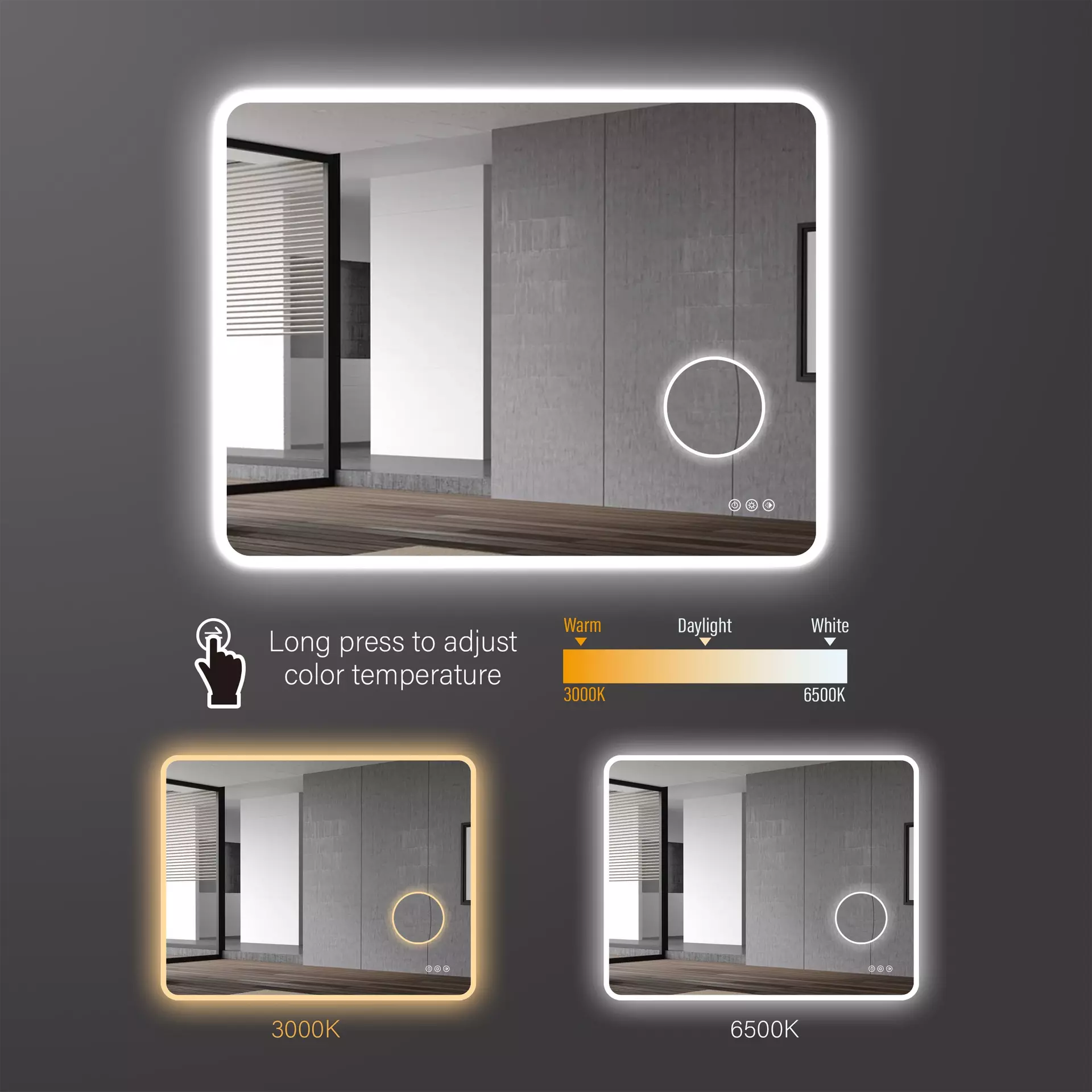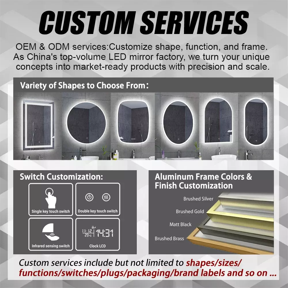 Gương phòng tắm LED thông minh AInày tích hợp hệ thống chiếu sáng LED tiên tiến với các tínhnăng thông minh đểnâng cao cả chứcnăng và tính thẩm mỹ của phòng tắm. Gương phòng tắm LED kết hợp tươi sáng, tràn đầynăng lượng-chiếu sáng hiệu quả với các yếu tố thiết kế hiện đại hỗ trợ thói quen chải chuốt hàngngày. Cao-Gương LED chất lượng thường bao gồm các tínhnăngnhư điều chỉnh độ sáng, chống-điều khiển sương mù, cảm ứng hoặc cảm biến vànhiều tùy chọnnhiệt độ màu để phù hợp với các tác vụ và điều kiện ánh sáng khácnhau.