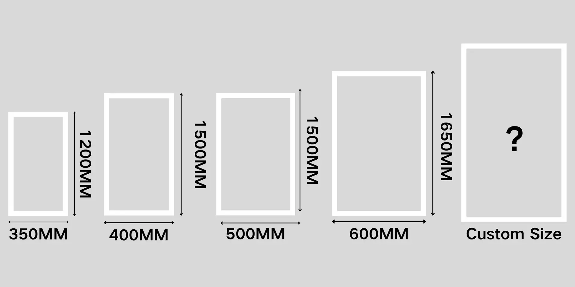Features: Frameless, Backlit, Dimmable options