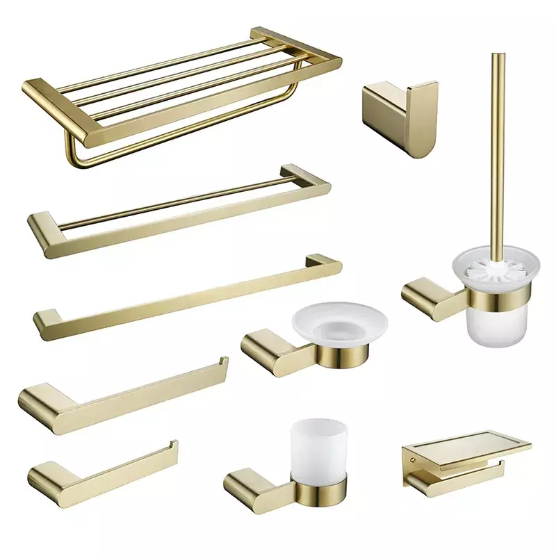 Specification Category Details Product Name High-end Hotel Bathroom Stainless Steel Hardware Set Product Type Bathroom accessory set / hardware set Primary Material 304 Stainless Steel (corrosion resistant) Finish Options Brushed stainless, mirror polish, matte black, brushed gold etc. Components Included Towel bar(s), robe hook(s), towel ring(s), other accessories (varies by SKU) Installation Type Wall mounted Design Style Modern / Contemporary Applicable Spaces Hotel bathrooms, commercial washrooms, home bathrooms Corrosion Resistance Excellent (304 stainless steel) Package Delivery Protective export packaging Customization Logo, finish and configuration options may be available Warranty Supplier dependent MOQ Typically 1 set or per supplier terms Origin Guangdong, China