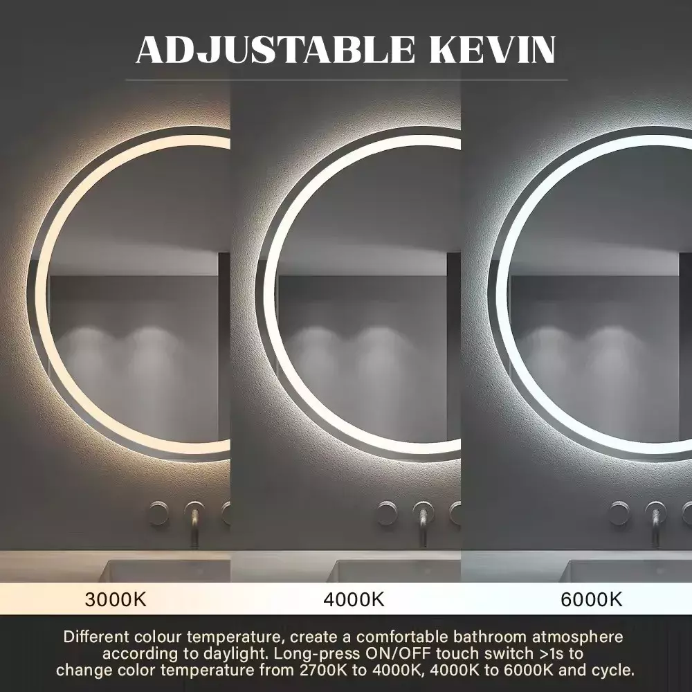 Equipped with a smart touch sensor switch, the mirror allows easy control of LED lighting and additional functions such as anti-fog technology. The built-in defogging system ensures the mirror remains clear even in humid bathroom environments, making it ideal for shaving, makeup application and skincare routines.