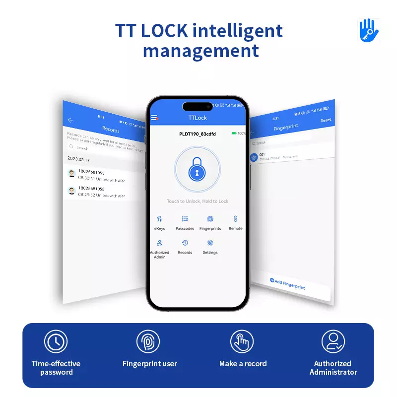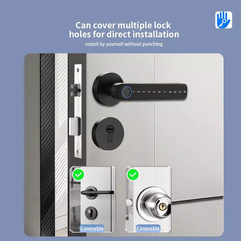 Electric intelligent smart home lock with Blueteeth cover multiple lock holes for direct installation for wooden door hotel apartment off