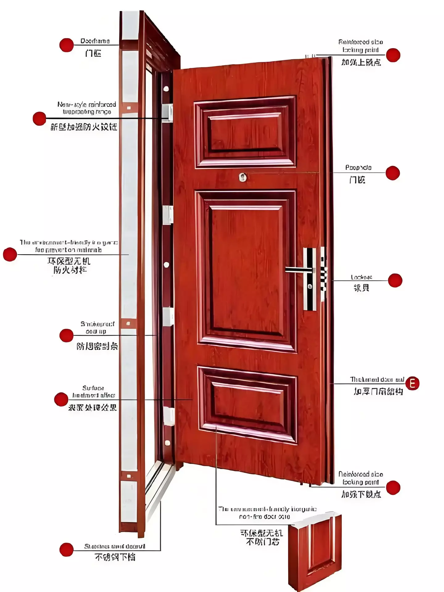 This Fire Rated Steel Door is a high-performance fireproof door designed to resist flames and prevent the spread of fire and smoke between building compartments. Constructed with robust galvanized steel and a certified fire-resistant core, it meets CE and UL safety standards for fire resistance, making it suitable for a wide range of settings including offices, commercial buildings, residential complexes, hotels and industrial facilities. Fire rated doors play a critical role in life safety strategies by maintaining compartment integrity during fire emergencies.