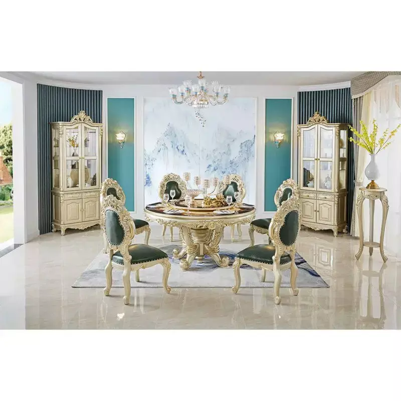 This antique style Italian dining table showcases classic European craftsmanship combined with luxury aesthetics. Featuring elegant carved details, refined structure, and rich wood finishes, it creates a prestigious dining environment.