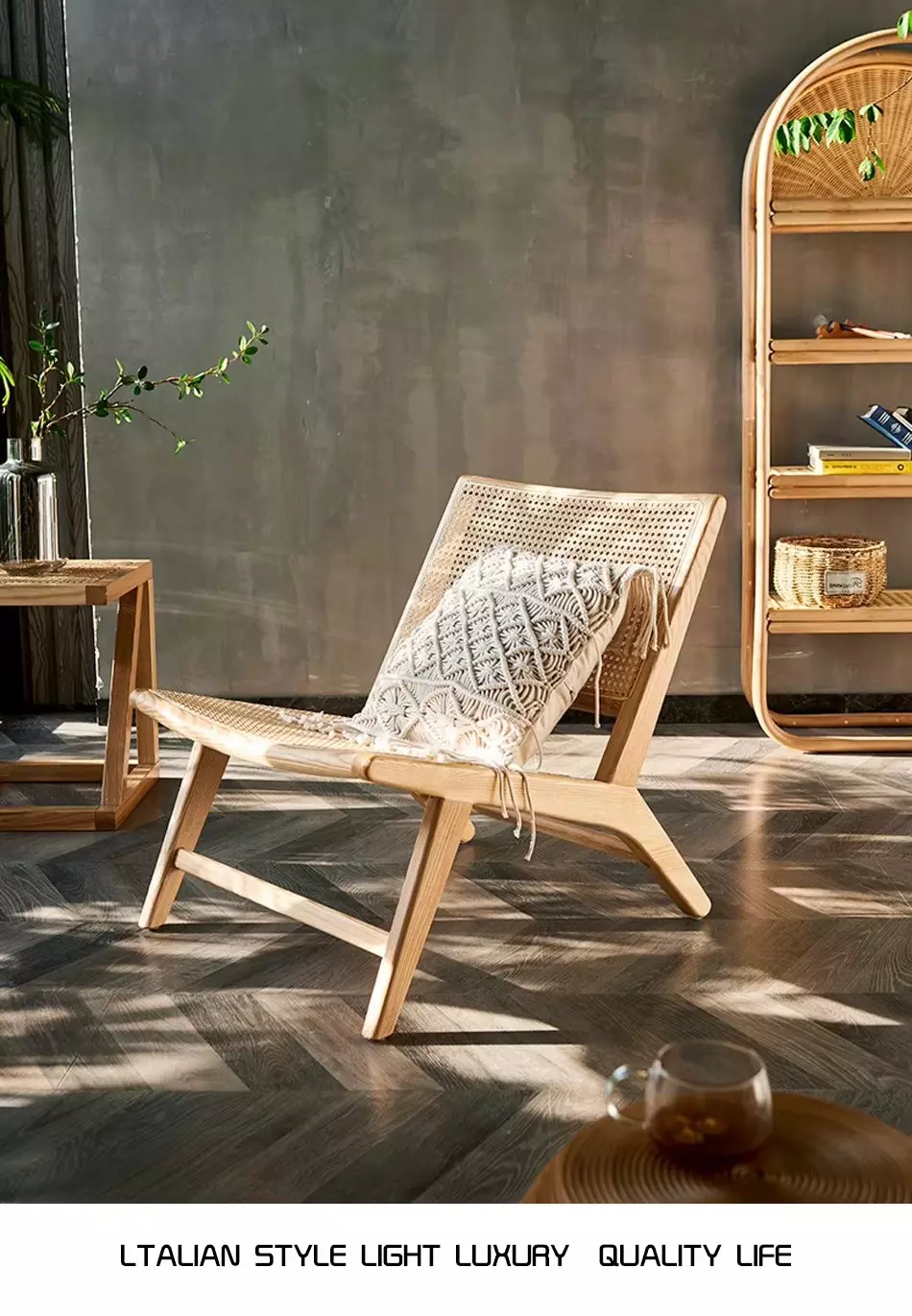 This Nordic modern leisure chair blends Scandinavian simplicity with Japanese minimalism. Clean lines, soft contours, and natural materials create a calm and elegant seating solution for modern interiors.